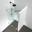Bestel een douchedeur voor een nisopstelling. Bij de uitvoering kies je de kleur van het glasbeslag: zwart, RVS of chroom. Daarnaast kies je of de afwerking van de greep en eventueel stabilisatiestang: rond of vierkant. De scharnieren kunnen select of premium afgewerkt zijn. Premium scharnieren hebben afdekkappen over de schroeven, bij select scharnieren zie je de schroefgaten zitten.